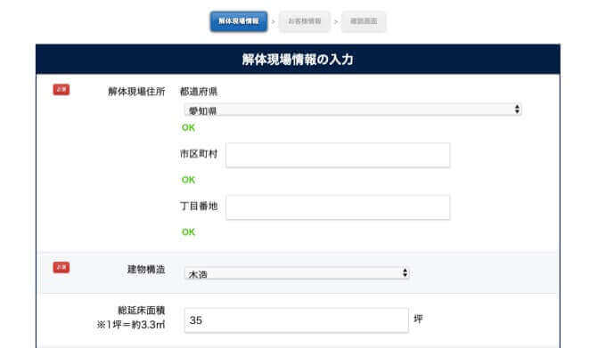 すみトマト希望納期に合う解体業者が選定されて、3社からの見積もりをいただくことができるので、比較がしやすくて便利!