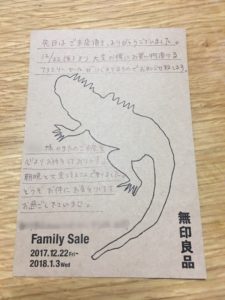 ハガキは無印良品で働く従業員を対象に配布されます。