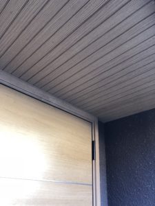 写真の左側の軒天がウッドクリア